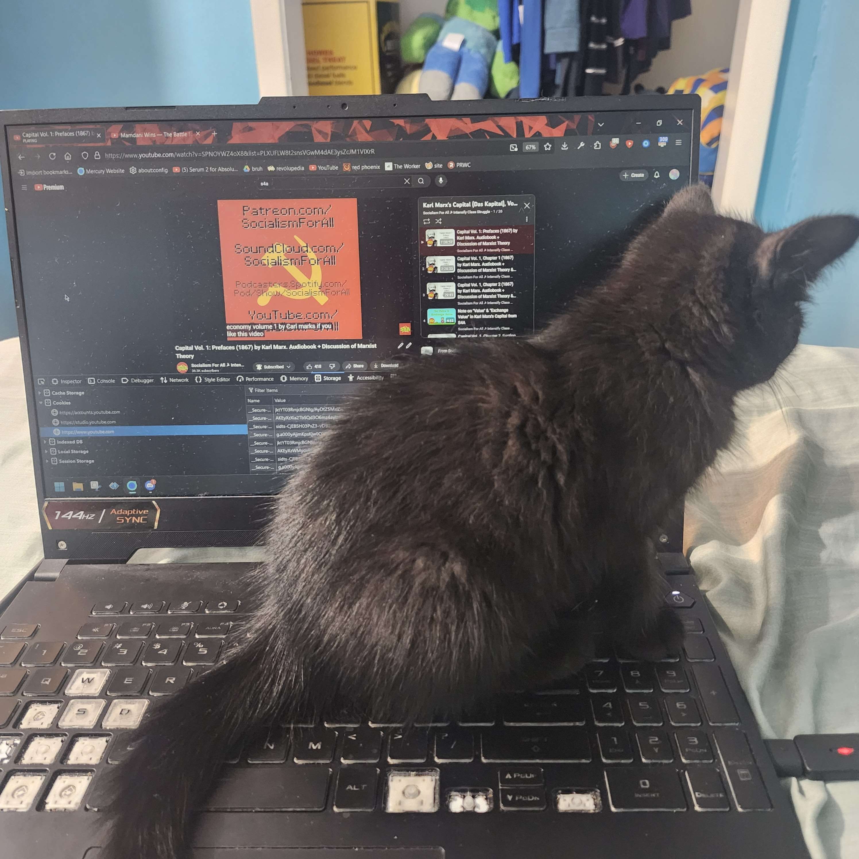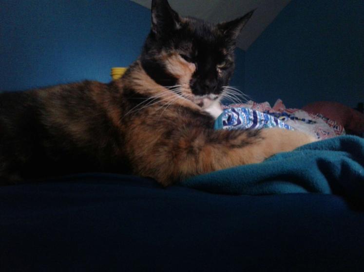 Pictures of my cats. The black kittens are Opal and Sapphire. The brown and black with white cat is Emma. (RIP)